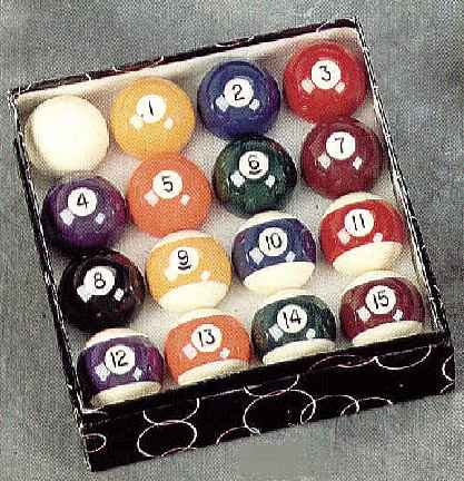 Brand new set of pool balls with the cue ball. These are commercial quality balls used for coin operated pool tables. Manufactured by Competition Games Inc.